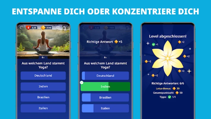 Im Gegensatz zu traditionellen Quiz-Apps, die oft den Wettbewerb betonen, lädt Antistress Trivia – Zen Quiz Sie ein, tief durchzuatmen und den Augenblick zu genießen. Es ist mehr als nur ein Spiel; es ist eine liebevoll gestaltete Wellness-App für Ihren Geist, die Sie ermutigt, Ihre Stimmung zu heben, Ängste zu lindern und entspannte Momente der Selbstreflexion zu erleben. Erleben Sie pure Entspannung im Quizformat – ohne Stress, ohne Druck, nur mit der Freude am Entdecken und der Ruhe des Geistes.