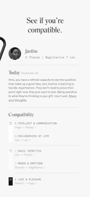 Mit Co–Star wird Ihre Geburtstabelle zum persönlichen Leitfaden. Fügen Sie Freunde hinzu, um Ihre Kompatibilität anhand präziser Geburtskartenvergleiche zu erkunden und so ein besseres Verständnis für Ihre gemeinsamen Dynamiken zu entwickeln. Erhalten Sie täglich personalisierte Horoskope, die speziell auf Ihre einzigartige Konstellation zugeschnitten sind, und lassen Sie sich von täglichen Benachrichtigungen inspirieren, die relevante Einblicke für den Tag liefern. Egal, ob Sie ein Neuling oder ein erfahrener Astrologie-Enthusiast sind, Co–Star lehrt Sie, Ihre gesamte Geburtstabelle zu lesen und die Geheimnisse Ihrer Himmelskarte zu entschlüsseln.