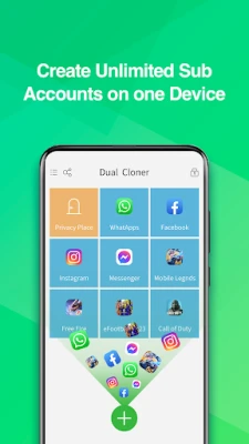Sind Sie es leid, ständig zwischen Gaming- und Social-Konten zu wechseln? Dual Cloner revolutioniert Ihre digitale Welt! Führen Sie unbegrenzte Kopien Ihrer geschätzten Social- und Gaming-Apps gleichzeitig auf einem Gerät aus. Steigern Sie Ihr Gaming und Ihre sozialen Interaktionen zu neuen Höhen.