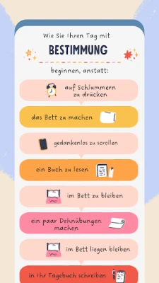 Entdecken Sie mit Fabulous einen Weg zu einem ausgeglicheneren, produktiveren und erfüllteren Leben. Wir wissen, dass der Grundstein für persönliche Erfolge oft in einer durchdachten Morgenroutine liegt, die Ihren Tag von Grund auf neu strukturiert. Fabulous begleitet Sie dabei, eine solch kraftvolle Grundlage zu schaffen und einen natürlichen Rhythmus in Ihren Alltag zu integrieren, der Ihnen mehr Energie und Klarheit schenkt, um Ihr volles Potenzial zu entfalten.