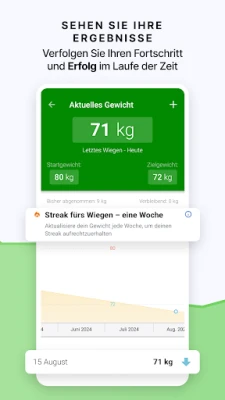 Behalten Sie mit dem intelligenten Ernährungstagebuch und dem Trainingstagebuch stets den Überblick über Ihre Essgewohnheiten und verbrannten Kalorien. Der dynamische Diät-Kalender visualisiert Ihre täglichen Fortschritte und die grafische Auswertung Ihrer Gewichtsentwicklung motiviert Sie auf jedem Schritt Ihrer Reise. Ergänzen Sie Ihre Aufzeichnungen mit persönlichen Notizen, um Meilensteine und Gedanken festzuhalten, und nutzen Sie die innovative Bilderkennung oder Ihre Kamera, um Mahlzeiten visuell zu dokumentieren. Detaillierte Statistiken und anpassbare Benachrichtigungen unterstützen Sie dabei, fundierte Entscheidungen zu treffen und am Ball zu bleiben. Mit bequemen Login-Optionen über Facebook und Google sowie der plattformübergreifenden Synchronisation zwischen App und Webseite sind Ihre Daten jederzeit und überall griffbereit.