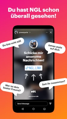 NGL - anonyme q&a ermöglicht dir anonyme Fragen und Antworten direkt auf Instagram. Teile deinen Link, erhalte Nachrichten und spiele lustige Story-Spiele wie „Nie habe ich jemals". Unsere fortschrittliche KI-Moderation schützt dich vor schädlichen Inhalten, für sicheren und unterhaltsamen Austausch.