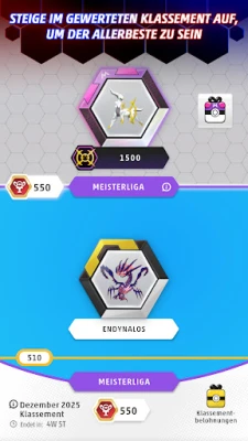 Stelle dein Können auf die Probe und erklimme die Bestenlisten! Sobald du bereit bist, misst du dich in spannenden Wettkampfmatches und steigst durch die verschiedenen Ligen auf, mit dem Ziel, die prestigeträchtige Arceus-Liga zu erreichen und deine Meisterschaft zu beweisen. Für abwechslungsreiche Herausforderungen sorgen die sich ständig weiterentwickelnden Trainer-Tests, die dich in zeitlich begrenzten Events wie der Silber-Serie und der Arenaleiter-Herausforderung immer wieder aufs Neue fordern. Erkunde im Erweiterten Format Karten bis zur Sonne & Mond-Serie oder experimentiere ganz entspannt im ungewerteten Modus mit neuen Deck-Strategien.
